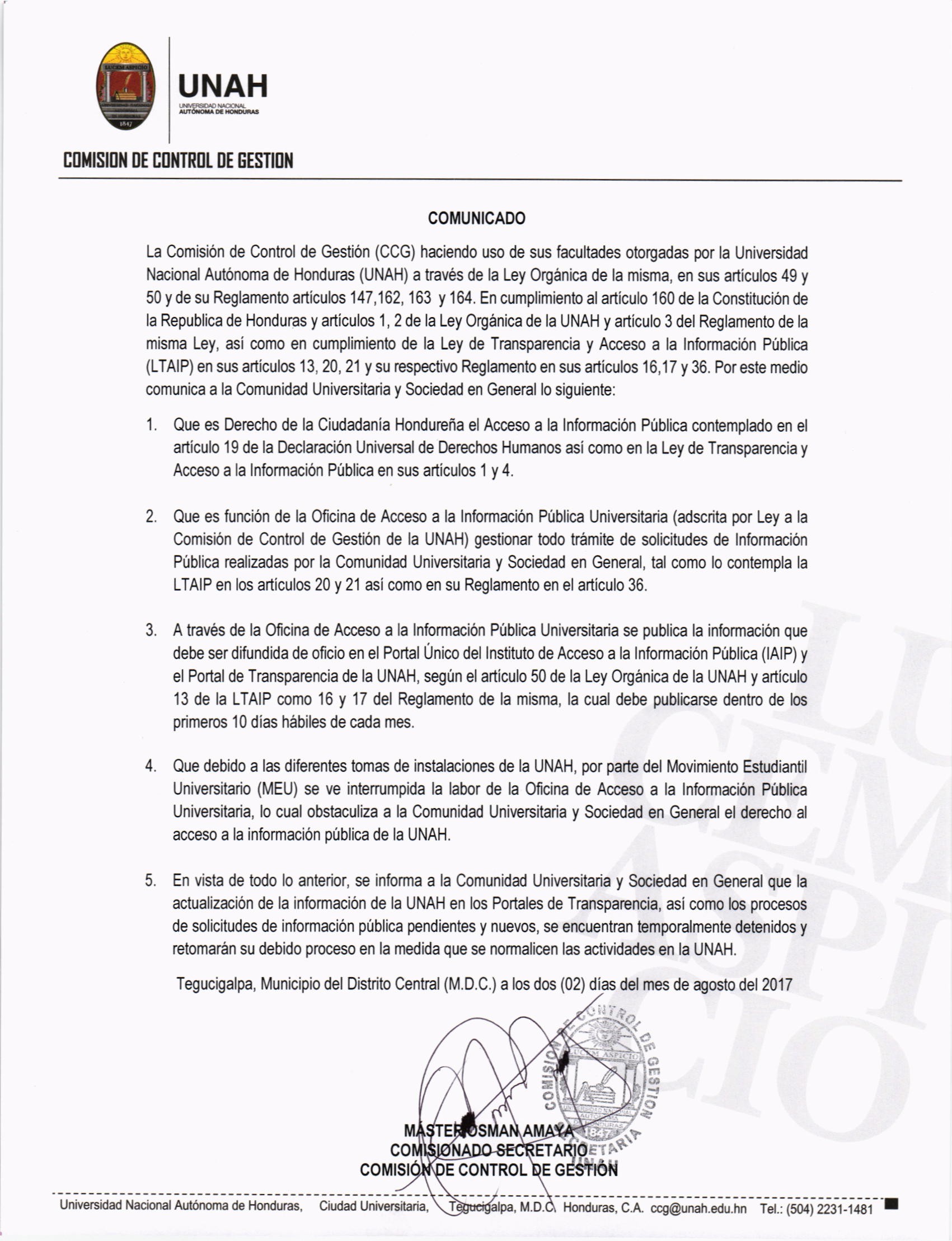 Funciones y Objetivos de la UNAH